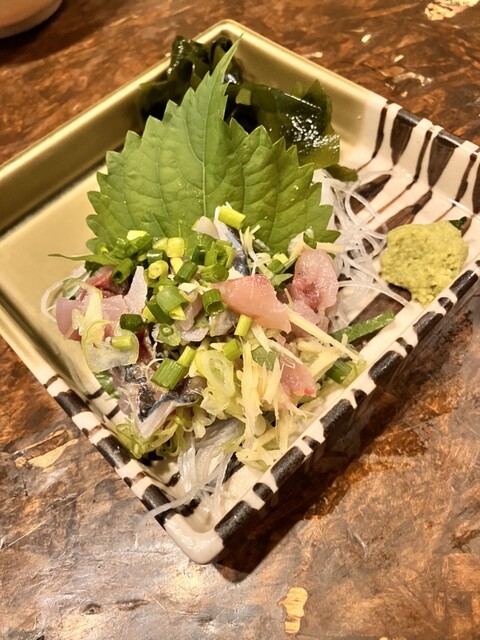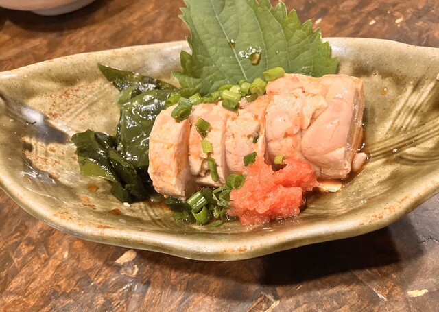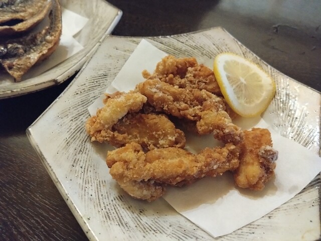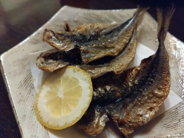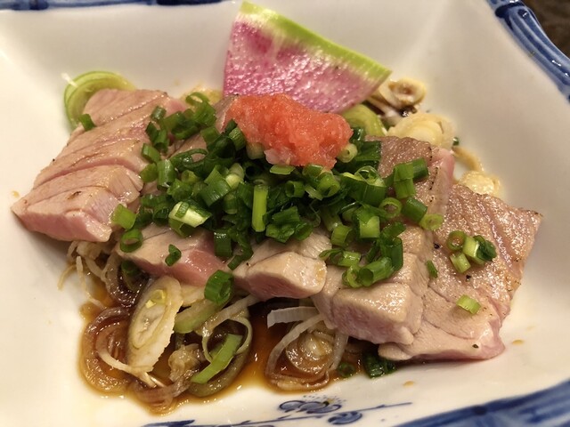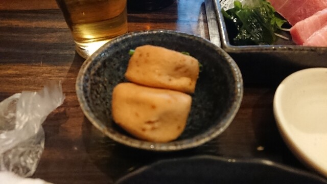 平日のまだ17時過ぎだけど店内宴会シーズンなので賑わっているがカウンター席はひとり客の私のみ案内される。 ○お通し(¥330全て税込) がんもみたいな甘い煮物。美味しい。 ... 詳細を見る