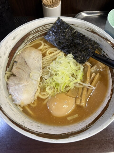 津田沼駅から徒歩1分魚介系正油らーめんと黒マー油の入った悪がばらーめんを食べてみてください