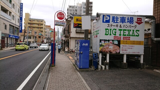ビッグテキサス(ステーキ)の先がタイムスその先がうなぎや