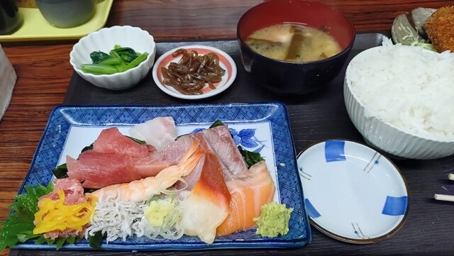 以前一番高いメニューの「特上」海鮮丼を食べたので今回は並、それも丼ではなく「刺身定食」にしてみました。店頭のホワイトボードにネタの説明は出てます。ネタと値段は同じですが、ご飯が酢飯... 詳細を見る