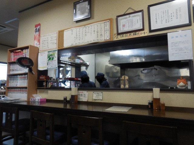 厨房は明るく雰囲気の女将さんのワンオペみたい。