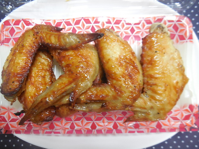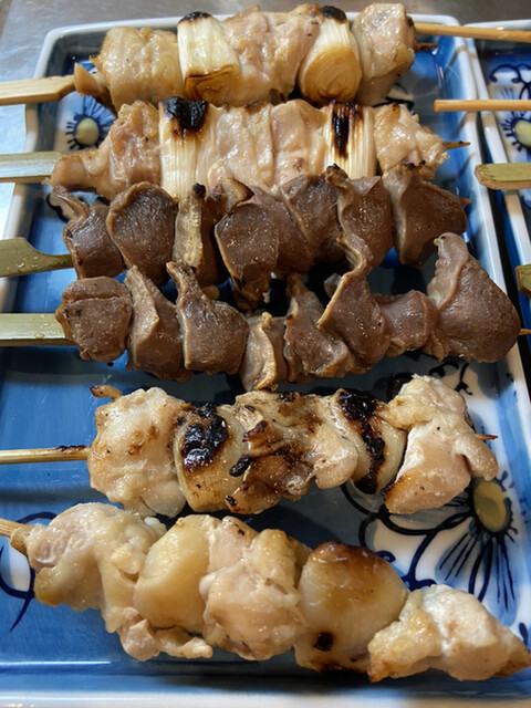 いろいろ迷った末に、「手羽にんにく串」「ピーマン肉詰め」「ももネギ串」「もも串」「ぼんじり串」を購入。