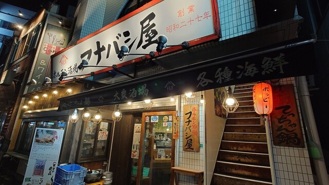 千葉県在住の友人と久々に会っての飲み!!西船橋で飲むのは初めてなのですが、駅前をちょっと歩いただけでもわかる結構な飲み屋街!何次会まで出来るか挑戦しようなどと言いつつ最初にお邪魔したお店がこの【フナバシ屋】!中に入るといかにもな大衆居酒屋といった雰囲気!カウンターの前にはガラス越しに新鮮な魚介類が並んでいます!!