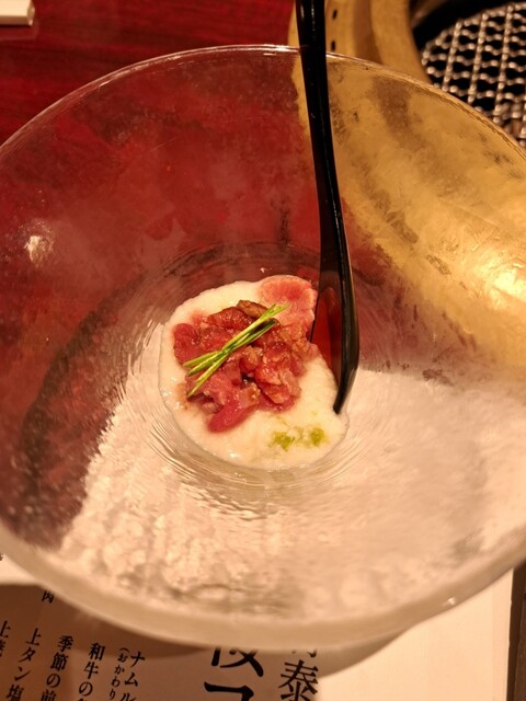 特別コース+上カルビ+タン塩+ビビンバ+ライス 全ての肉に共通しているのは、とろける食感! 味は言うまでもなく美味しすぎる上に、希少部位の宝箱から出してくれる目で楽しませてくれる事も味わいを一層深くする一興。 肉茶漬けに関しては、アナログな方法で目の前で御茶をたてて、面白くもグルメの楽しさに中にある食の一層の旨さを引き出す趣向も感激させてくれる。 詳細を見る