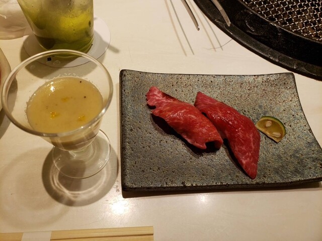 肉は店員さんが焼いていただき、焼き加減も抜群で美味しく食べられました。