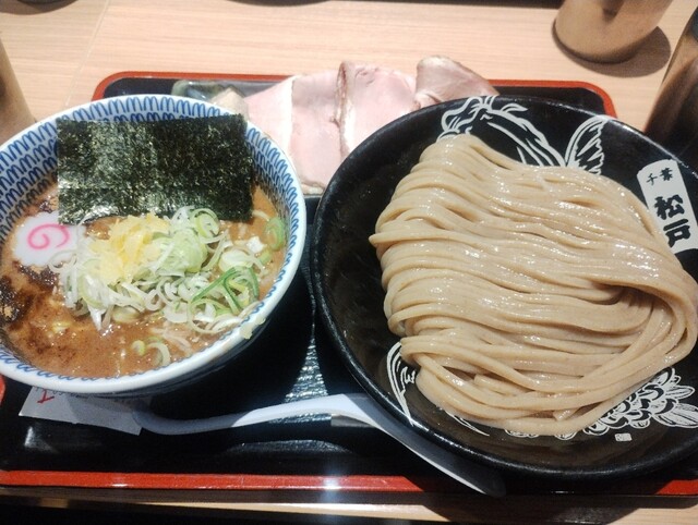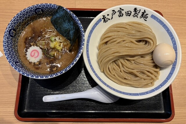 松戸富田製麺 ららぽーとTOKYO-BAY店でつけ麺をいただきました。濃厚な魚介豚骨スープはコクがありつつもバランスが良く、最後まで重たくならずに楽しめました。麺は太くてもちもちしており、つけ汁との絡...