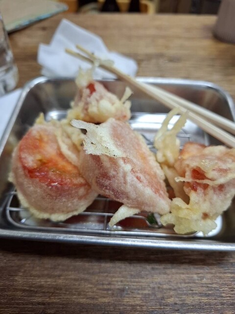 トマト天ぷら、美味しい。。?。発見。