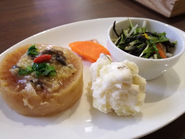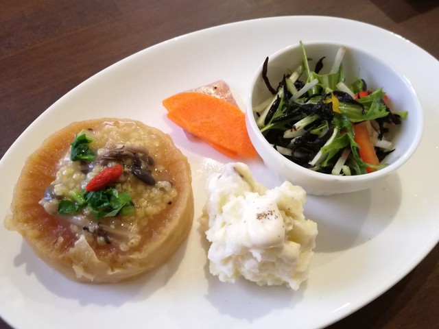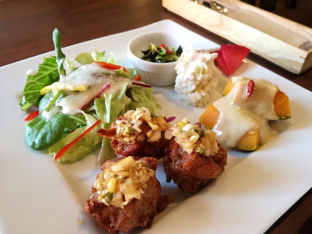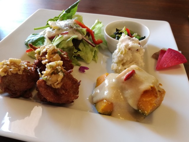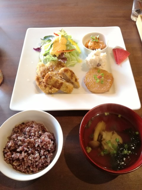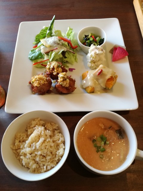 手製のドレッシングのサラダ 手製のマヨネーズのポテトサラダ 高野豆腐のはさみ揚げ わらびの味噌汁 美味しい玄米ごはん とれも丁寧な料理で、しあわせな気持ちになります。... 続きを読む»