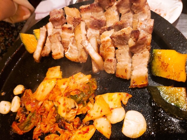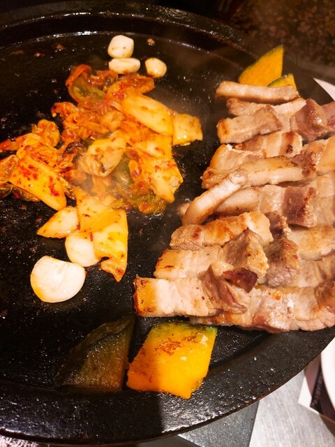 溶岩石で焼き上げる絶品サムギョプサルと韓国料理を堪能♪