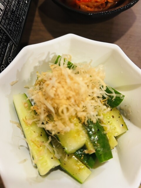 生ラムセットを2人前とキムチ、さっぱりきゅうりをオーダーして、連れが到着後に焼き焼き^ - ^