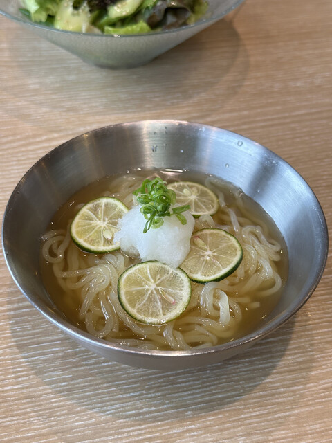 冷麺の麺は太めでモチモチしていて、ここでしか食べられないオリジナルを感じました。