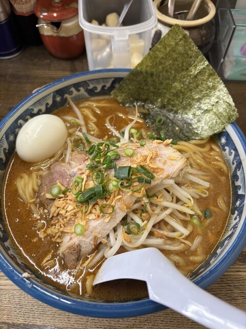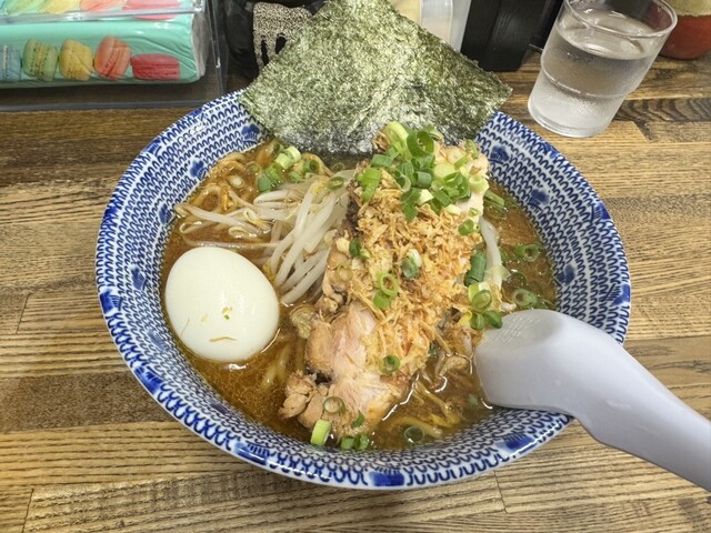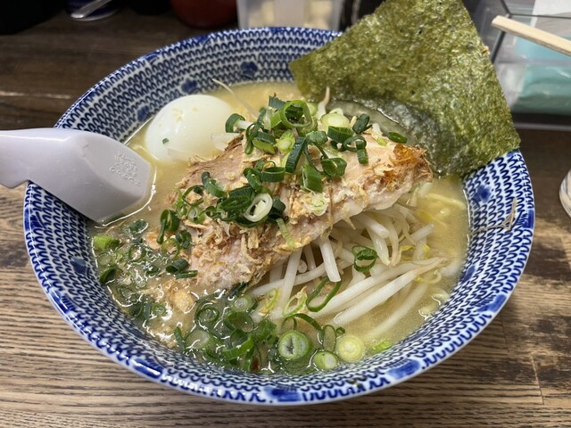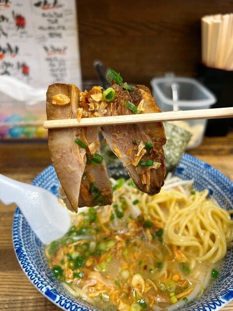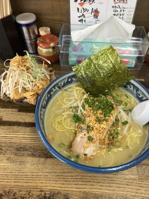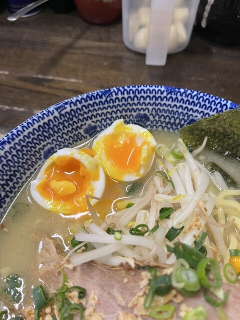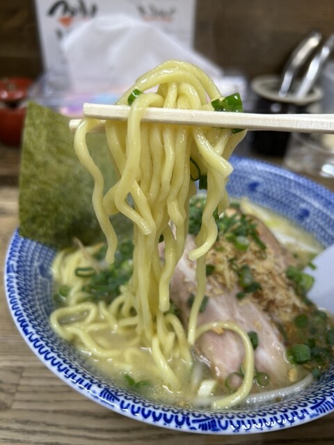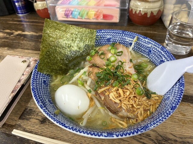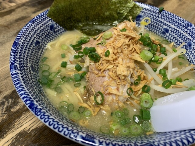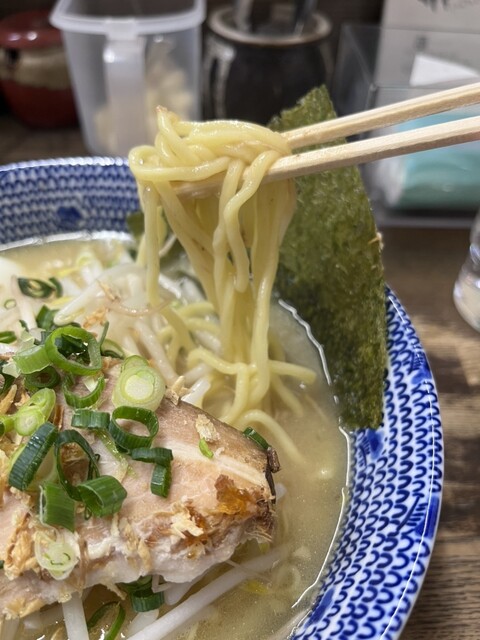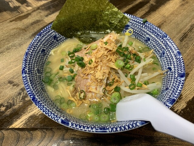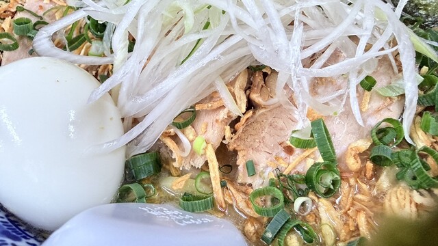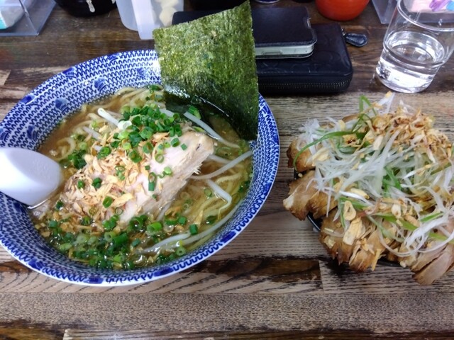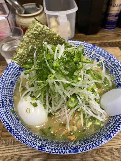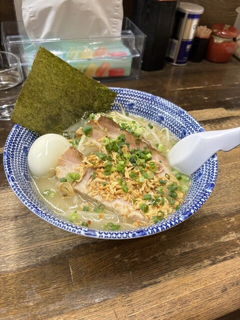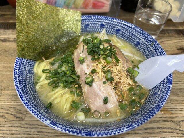 土曜日の18時過ぎに訪問。ラーメン、塩、卵とネギのトッピング。スープは塩とんこつをマイルドにした感じで口当たりが良い。野菜の甘みがします。麺もそれによく絡みます。ニンニククラッシュすると、ジャンクさが...