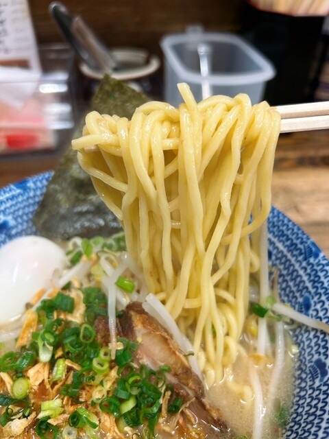 濃厚なスープに麺が絡み食べた瞬間にはい美味いと思ってしまいました。