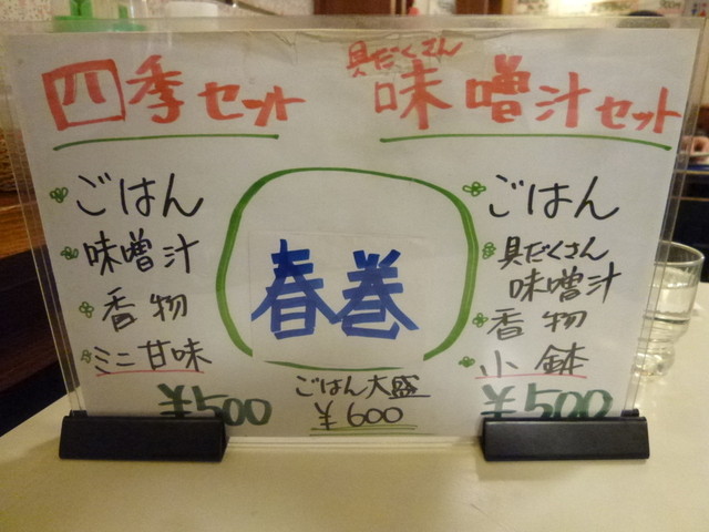 パッと目にとまったのは四季セット&具だくさん味噌汁セット各¥500ー