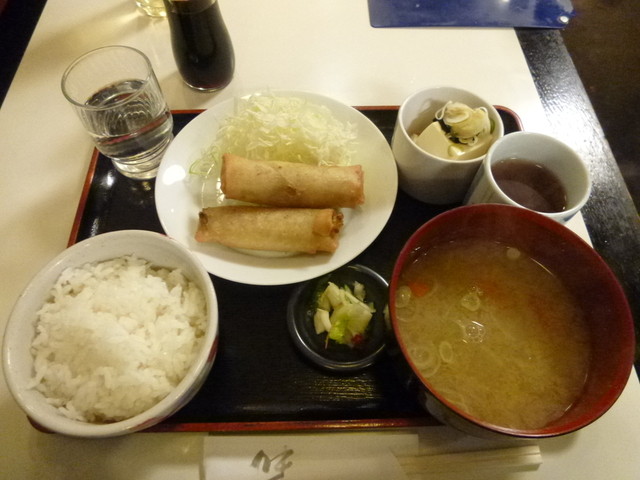 春巻2本にキャベツ、冷奴、お新香&具だくさん味噌汁です(*´∀`)