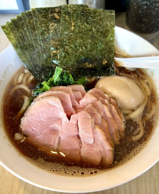 昔から定期的にきているこちらに訪問。 寡黙な店主が丁寧に作るラーメンに心を奪われて20年。醤油、味噌、塩と色々なラーメンがあるものの、いつもの濃口煮干しラーメン一択。ハーフチャーシュー、のり、大盛りをオプションで計1100円。どこのラーメンも値上がりしているなかで、ラーメン750円の値段は変わって... 詳細を見る