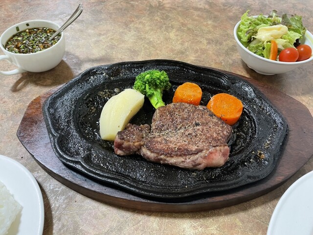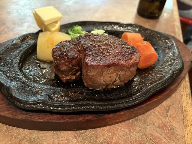 柔らかくて、付け合わせの野菜もステーキソース(これがまた美味い!ニンニクとニラをたっぷり使った醤油ベースソース)もつけて美味しくいただきました。