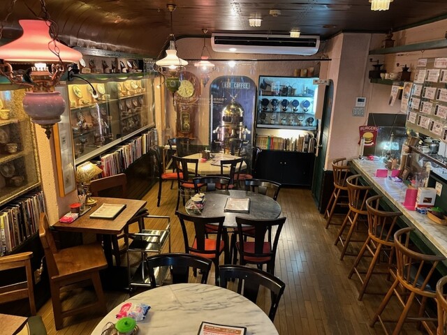 創業50年のレトロな喫茶店です。自家焙煎したコーヒー豆と紅茶、ハーブティー、中国茶等、豊富なドリンク類とケーキやスコーン、カレー、サンドイッチ等の軽食があります。各種テイクアウト可能。物販コーナーで珈琲豆の量り売り、紅茶やハーブティー等もお買い求め頂けます。電話やFAX注文で地方発送も行っております。