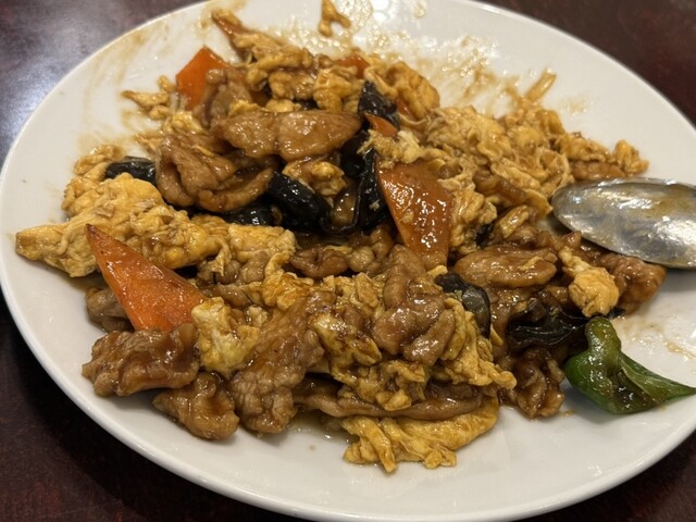 この日はいつもの特製炒飯と餃子と麻婆豆腐とに、ムーシーロー(豚肉とたまごときくらげの炒め物)を頼みました。ムーシーローが本当においしくて、脂身の少ない豚肉を...