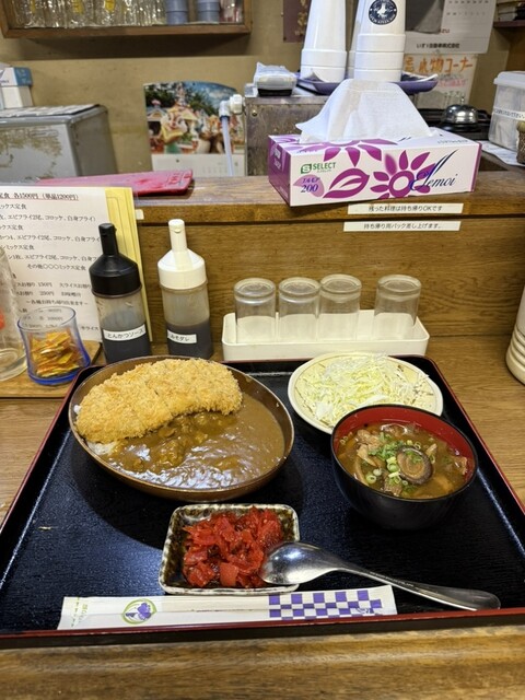 なめこ汁が無性に食べたくなってそういえばここの店員が注文時にいつも「豚汁?なめこ?」って聞いてくることを思い出してかなり久しぶりの訪問。 注文はシングル定食からロースカツ定食... 詳細を見る
