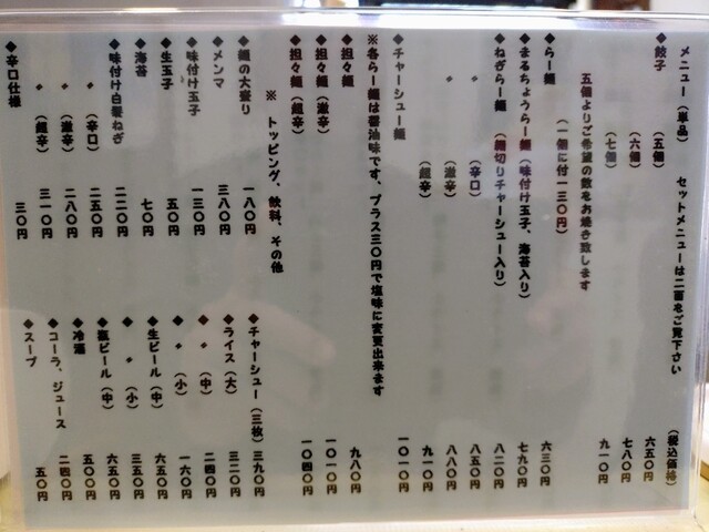 メニューは一番右側に餃子が書かれており、ラーメンよりも餃子推...