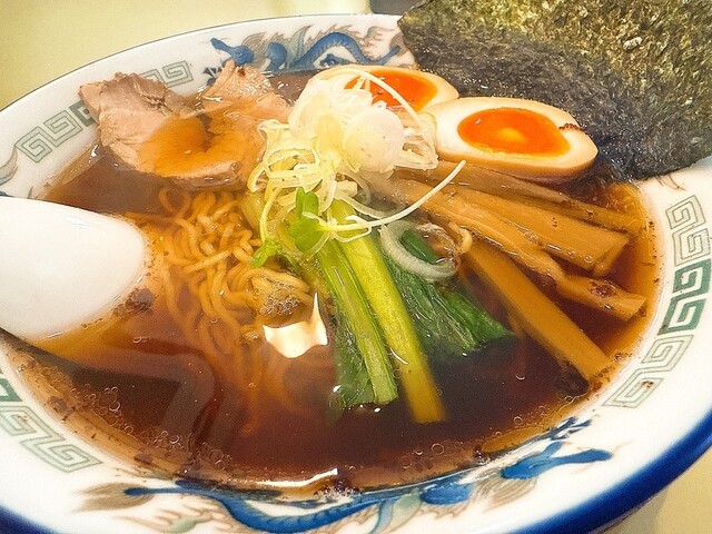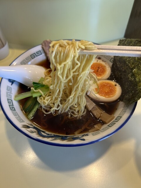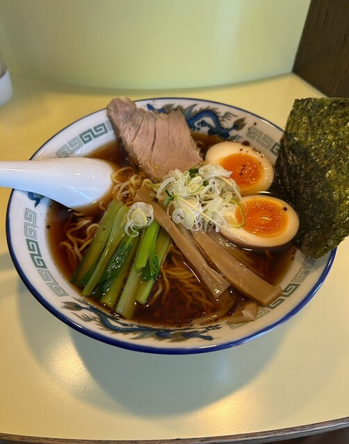 カウンターと奥に家族用カウンター併設型テーブル。マックスで13名。単品ラーメン、お値打ちだ。初めてなんで、焼餃子も付いてくるセットを。名前を冠した丸長ラーメンは、ラーメンに煮卵半割2個と海苔が乗せられている。ベースは一緒。だから普通のやつ990円也を。到着。素晴らしい。お、焼餃子でか。通常焼餃子は5個からしか頼めないがセッ...