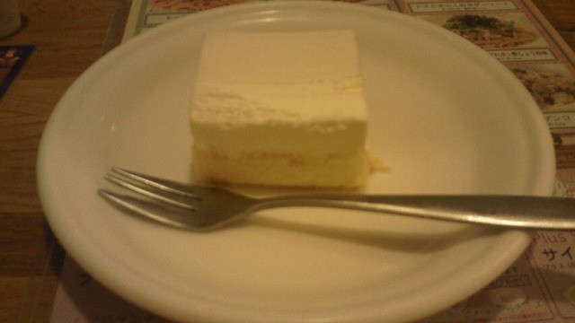 デザートのレアチーズケーキは残念。100円にしても、あまりにお粗末な気がした。でも200円にすると誰も頼まないんだろうね…。