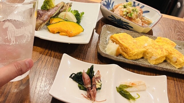 カウンターは常連席のようです。 靴を脱いで、2名テーブル席に。 1人だったので話し相手もなく気まずいのでただスマホをいじったり、テレビを見上げたり。一品料理はどれも美味しか... 詳細を見る