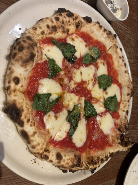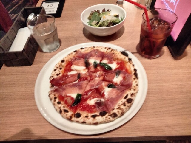 次の仕事へ行くため、乗り換えで降りた本八幡駅付近でランチを取ることにした。 せっかくならチェーン店などではなく地元のお店を、とぶらぶら歩いてここを見つけた。 二階へ上がり中へ入ると、中央の大きなテーブルの廻りを垂れ幕で仕切られたテーブルが囲んでいる。 イタリアンのお店とはちょっと異なる印象だけど、これはこれで良いかもしれない。 石窯焼のピザが目玉のようなので、オーソドックスなマルゲリー... 詳細を見る