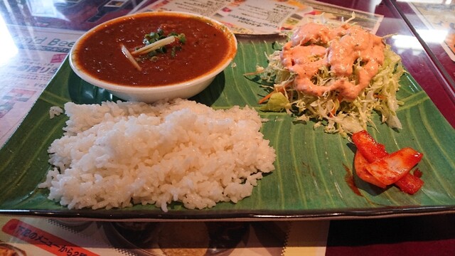 かなり気に入りました。 夜行って、1350円のセットを注文。 カレー2種とナン、サフランライス、サラダがついてます。 カレーの種類は多く、10種類くらいの中から選べます。(単品ならもっと種類は多い) 私が食べたカレーは下の2種。どちらもたっぷり入ってて具だくさんでした。 素材の味がしっかりと味わえます。そして、ボリュームあるけど上品な味のカレーです。 一言で言うと、おいしい! 私... 続きを読む»