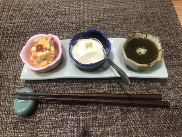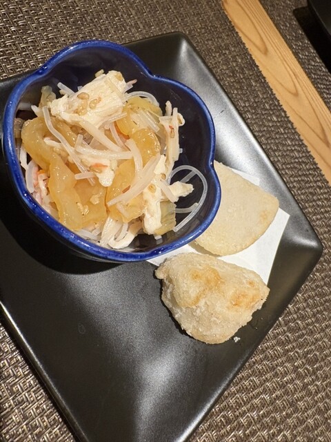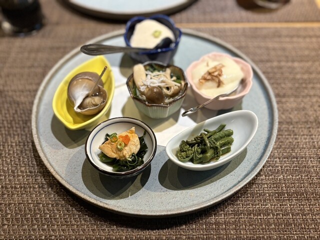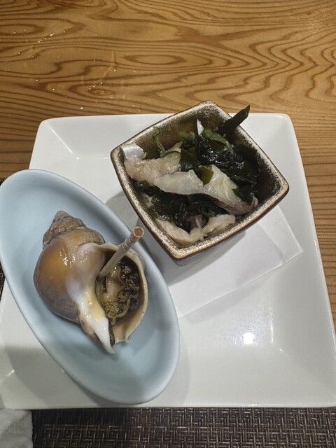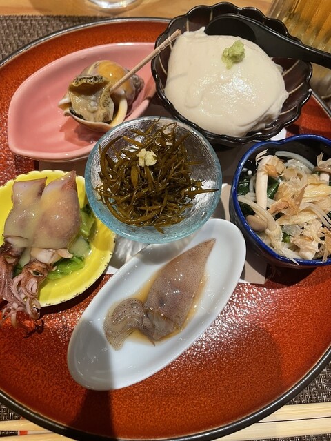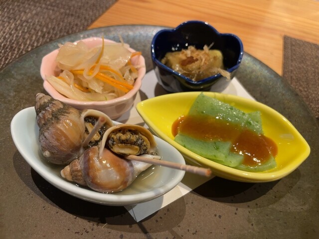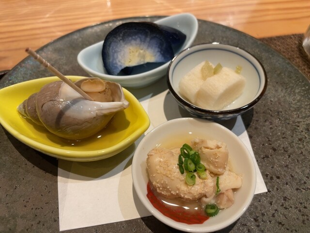 御通しの盛り合わせがまず気が利いている。ただすぐ日本酒が欲しくなる。つぶ煮うまいねぇ。今...