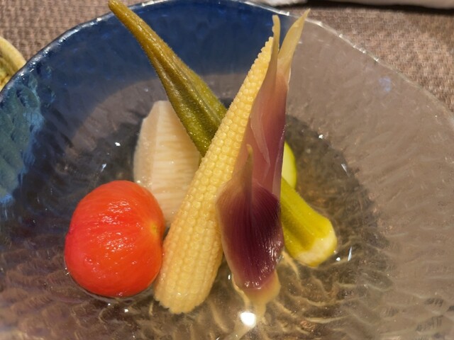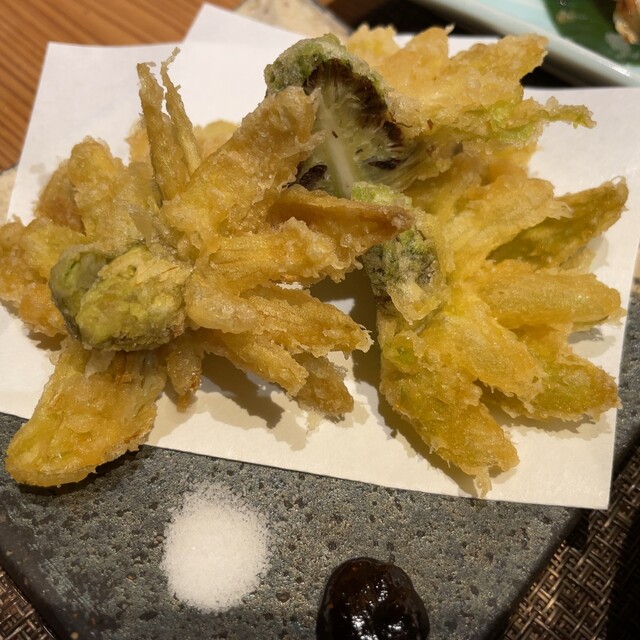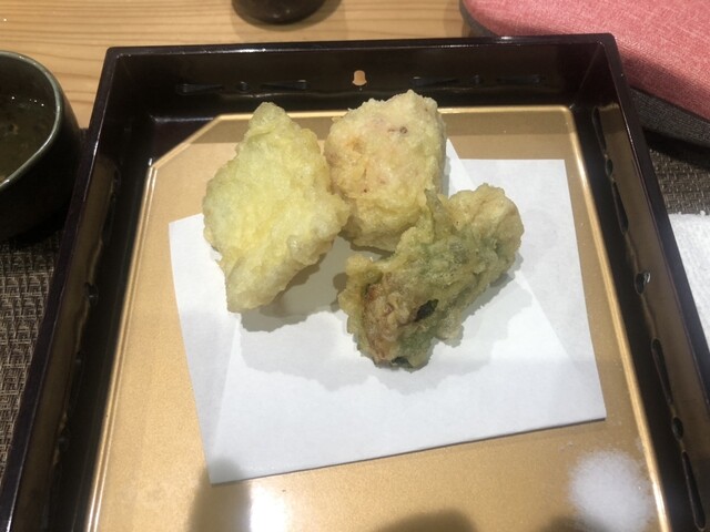 いつものカウンターに陣取り、生ビールにいつもの料理。先付けもどれも美味しくて、季節の枝豆は、あげ加減が最高で、甘さを最大に生かしていて。新玉ねぎのムースも、目を瞑り食べればここはフレンチレストランか?...