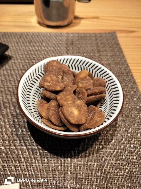 お通しもバイ貝と里芋的な芋でビジュも良く期待が高まります。レビューで黒糖そら...