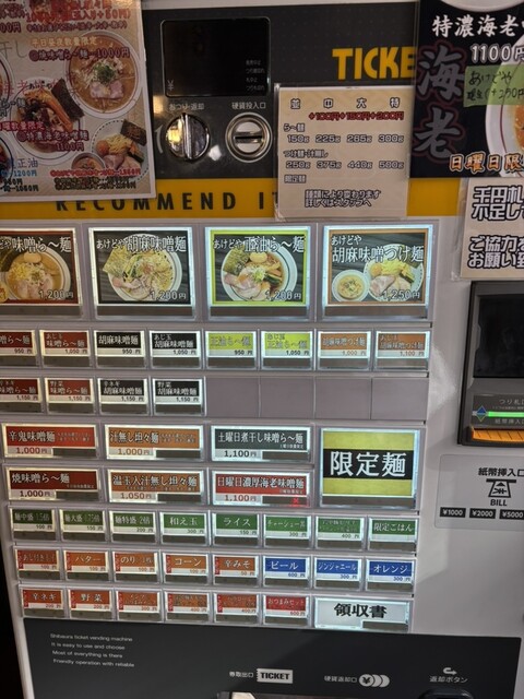 初めてなので、自販機左上のあけどや味噌 大盛を注文し...