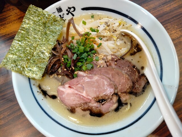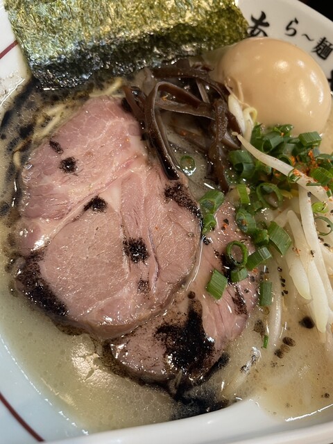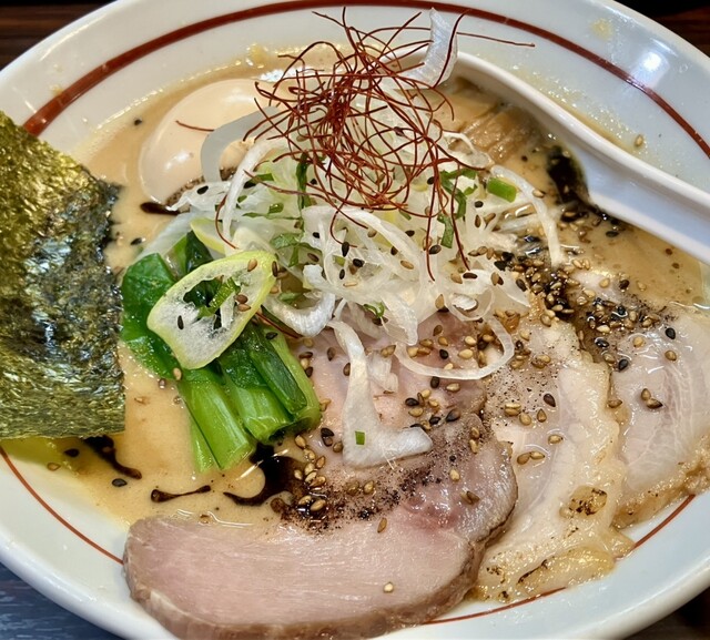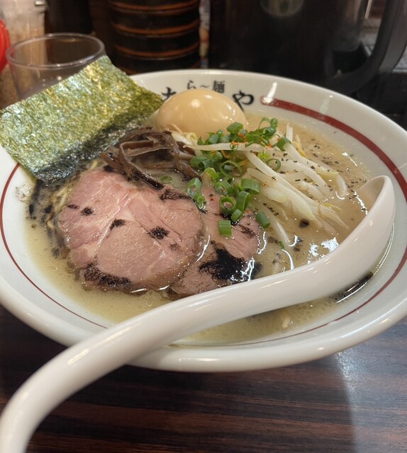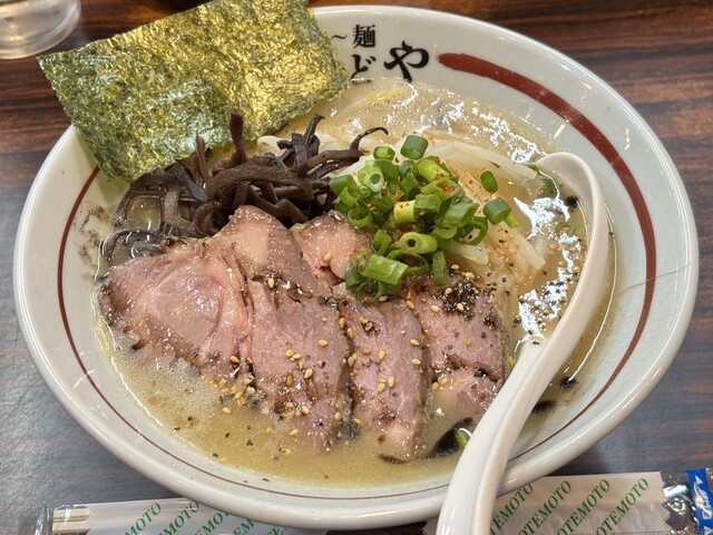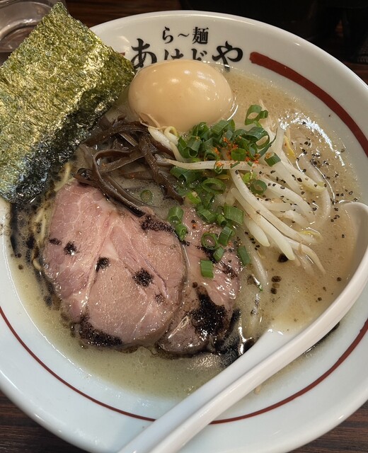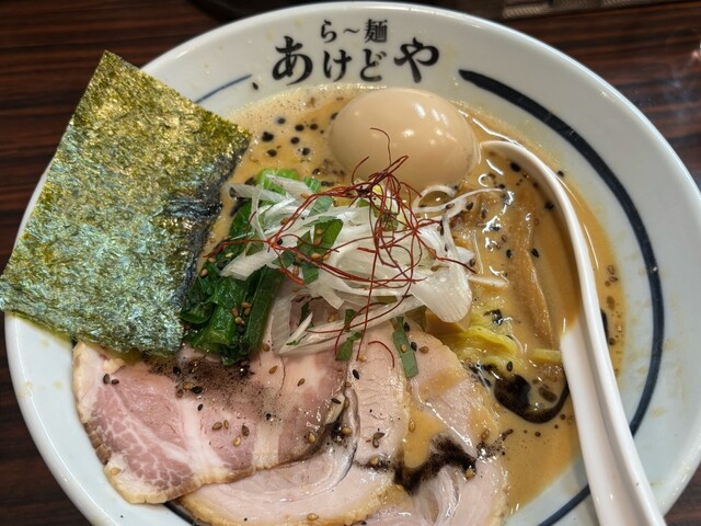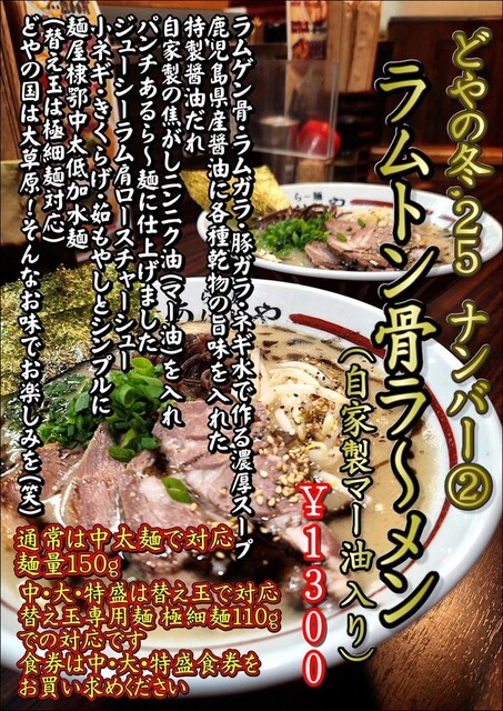 今日のお昼は市川駅南口のら〜麺あけどやさんにて、ドヤの冬'25 ナンバー② ラムトン骨ラ〜メン(自家製マー油入り)1300円をいただきました。