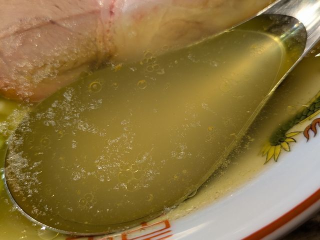 美しい黄金色の白湯スープをすすると