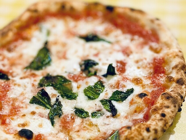 店内の薪窯で焼き上げる、本格的なナポリピッツァが人気のピッツェリアです。定番のマルゲリータから、旬の食材や独創的な素材を使ったオリジナルピッツァまで、メニューが豊富。モチモチとした生地と、素...
