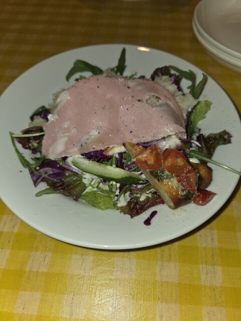 メニューから、PraozoA 1,700円でハム入りサラダに...