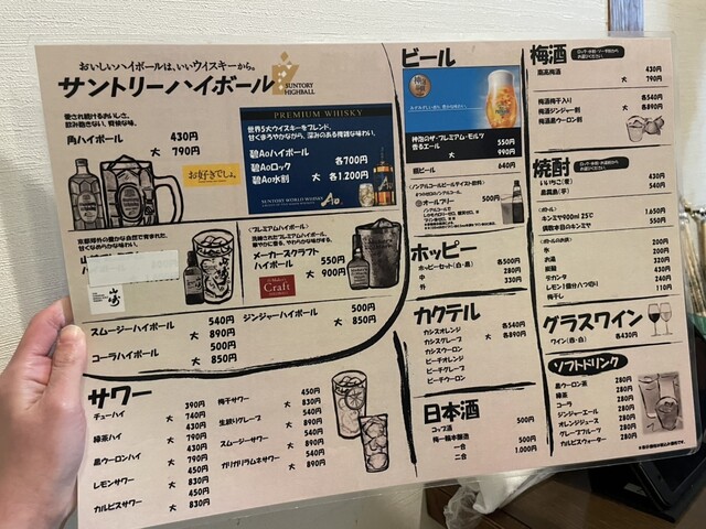 | 空間・設備 | カウンター席あり、座敷あり、スポーツ観戦可、電源あり、無料Wi-Fiあり |