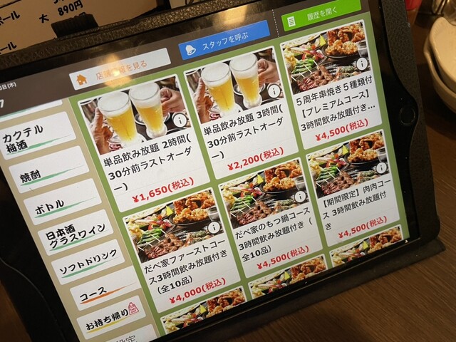 | サービス | 2時間半以上の宴会可、テイクアウト |