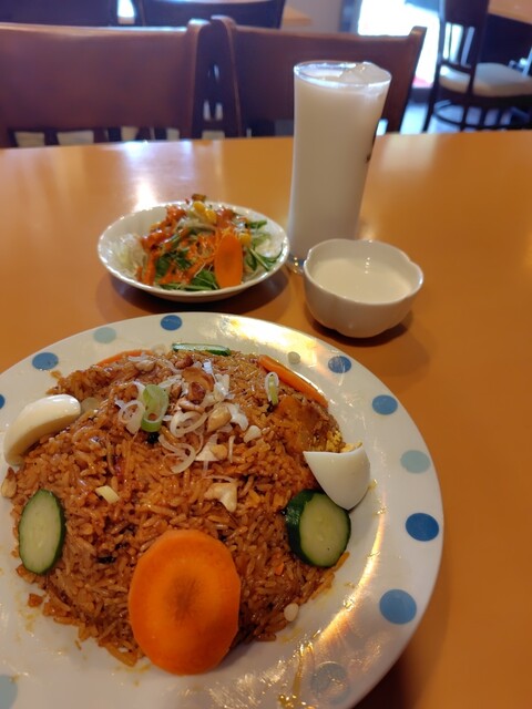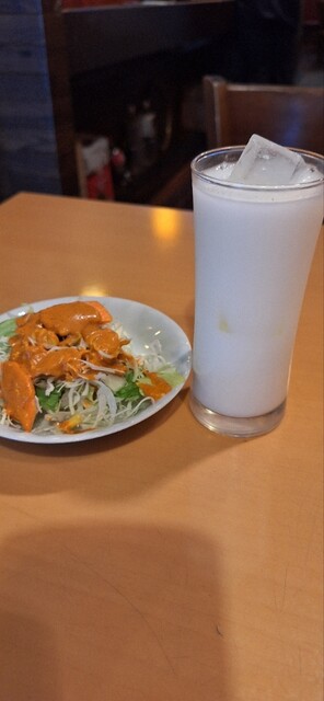 メニューのディナーセットから、チーズナンセットにし、カレーはほうれん草チキン、飲み物はマンゴーラッシーにしました。