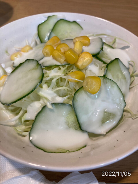 その上に千切りキャベツ少々と