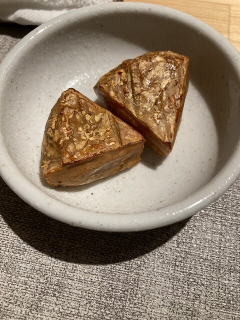 お通しに熱燗がもらえるのが嬉しい。玉蒟蒻で流し込みます。