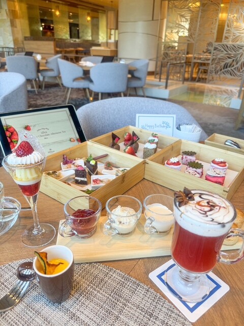 1階ラウンジにて、アフタヌーンティーセットを美味しくいただきました。