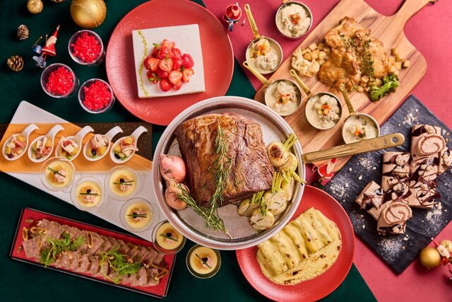 「伝統のローストビーフ」、音と香りがたまらない鉄板実演メニュー、充実パワーサラダ、チーズをからめる生パスタ、さらにシェフパティシエが季節に合わせて色鮮やかなスイーツを用意したデザートビュッフェを存分に堪能。
