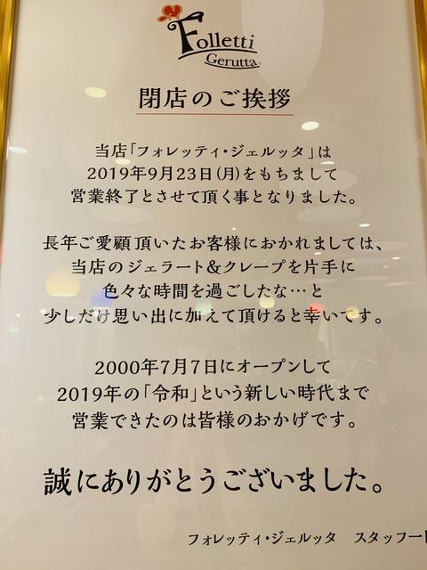 今日で営業終了ですね。スタッフの皆さまお疲れ様様でした。そして美味しいジェラートを提供していただきありがとうございました。レディースデーや映画を観た帰りに半券を使い必ずと良い程利用させてもらいました。...
