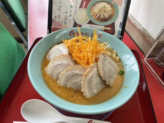 11時オープン前に到着。 駐車場が何台か停められます。 オープンと同時にお店に入り、ベビーチェアを出してもらいました。 店員さんが若いお姉さんで嬉しいのか、何故か店員さんに猛烈にご機嫌をアピールする娘ちゃん…。 娘ちゃんは早々とお子様ラーメンに決まりました。 私はネギ味噌ラーメンにチャ... 詳細を見る