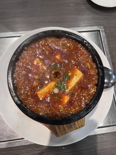 とチャットGPTに聞いたらここですと^_^ お店の人に辛くしてと頼むと十分辛いよと言われそのまま注文 石焼麻婆豆腐は食べるとそんなに辛くないのに汗がとまりません口はヒー... 詳細を見る