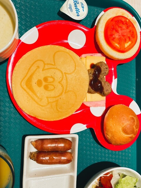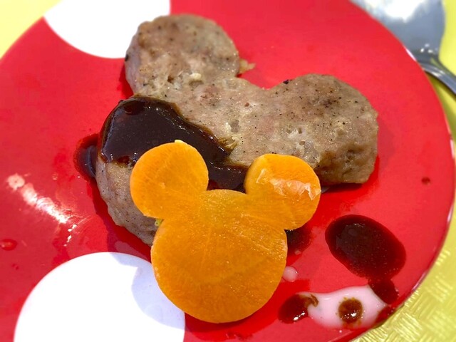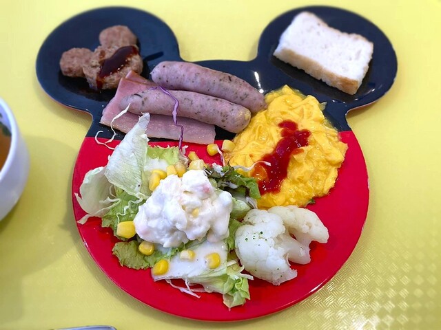 料理は洋食がメイン、ミッキーをかたどった皿に盛り付けてい...