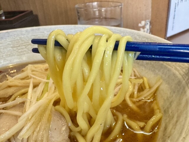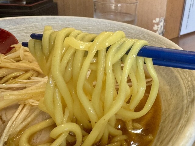 休日の11時20分に到着。 相変わらずの大盛況。 店内は満席で外に5人ほどの待ち。 15分ほど待って店内へ。 ◆節仕込みらーめん(800円) ◆麺 大盛り(プラス半玉... 詳細を見る